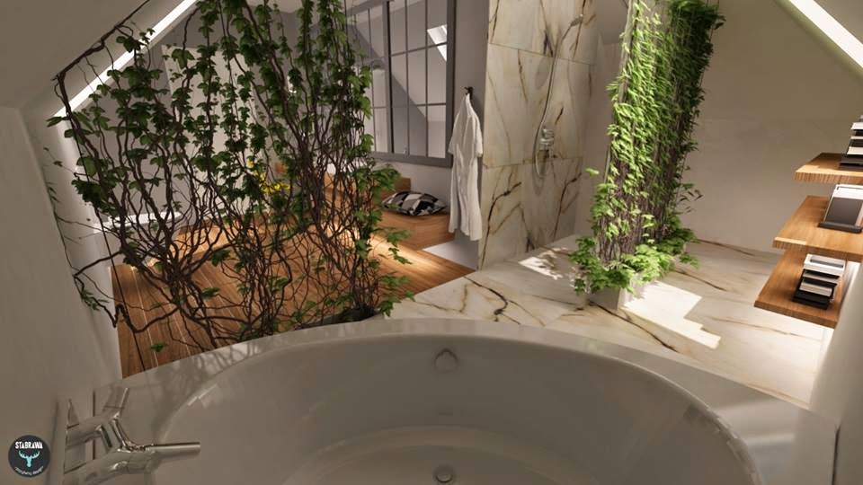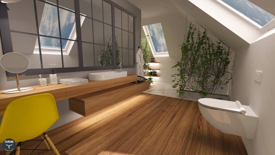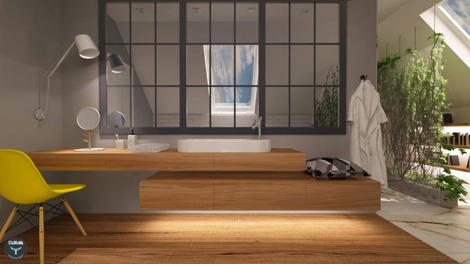 A tutaj łazienka – jedna z trzech. Drewno, kamień i szczypta industrialu czyli wszystko to, co zostało w głowie po targach w Mediolanie.
