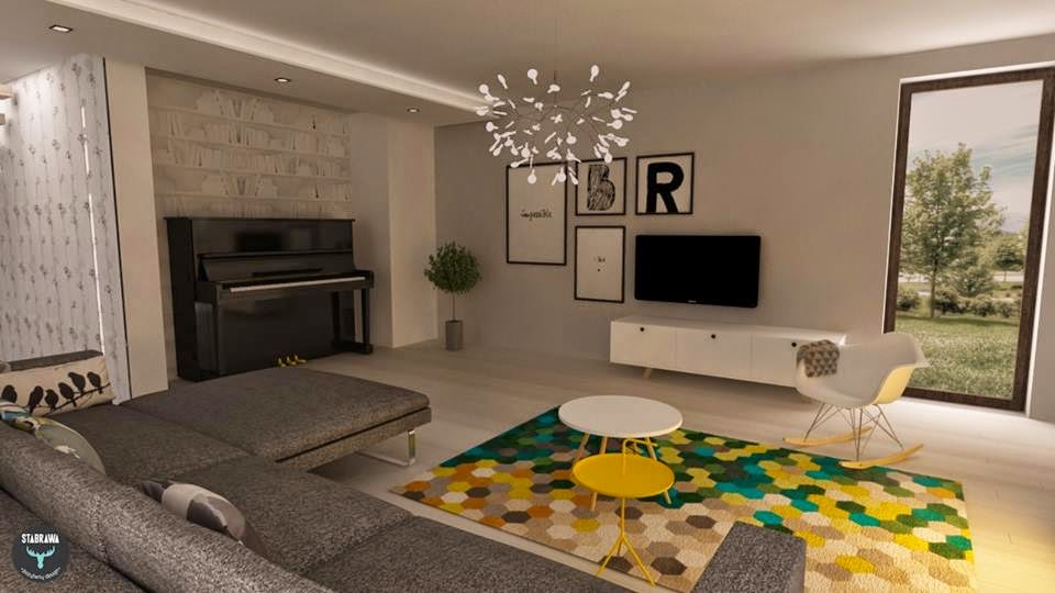Wracamy do tego wnętrza. Kiedy pisałam o nim po raz pierwszy, wspominałam o zmianach zabudowy kominka i sofach. Po kilku próbach znalazłam rozwiązanie. Dorzuciłam jeszcze nową lampę i kilka rozweselających dodatków…