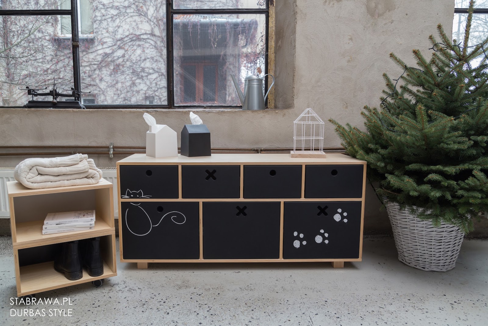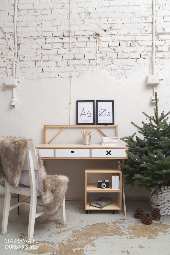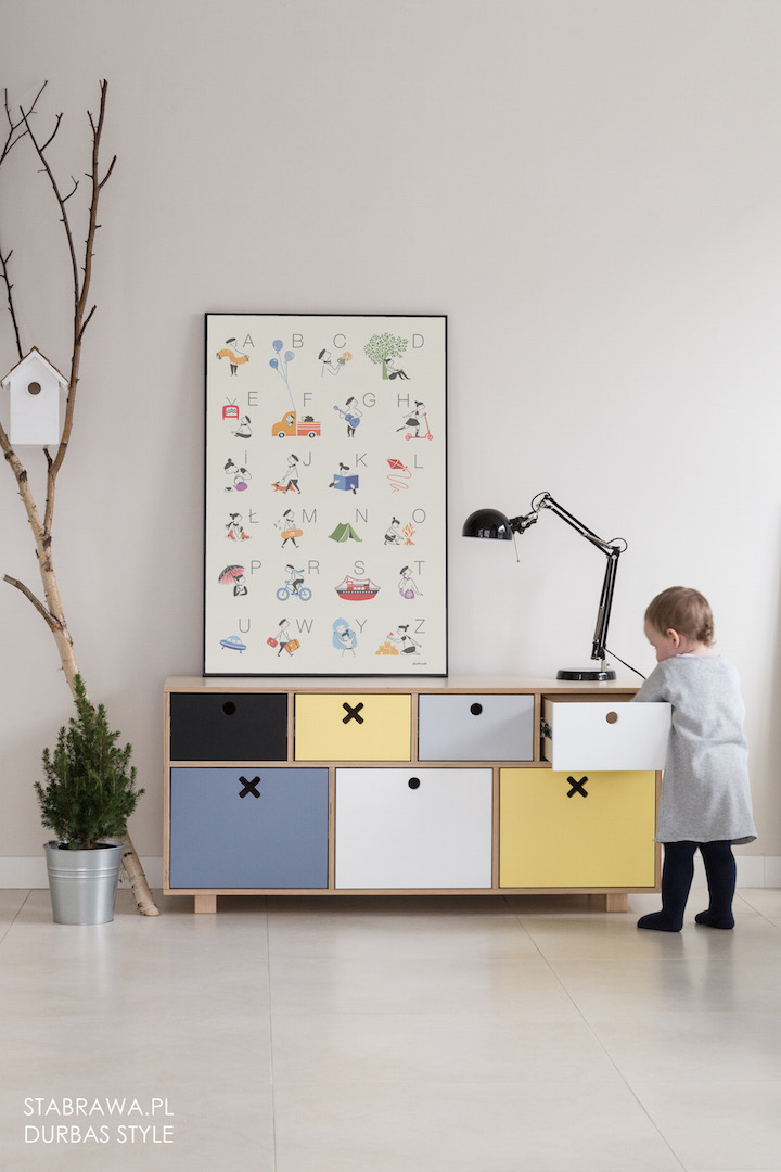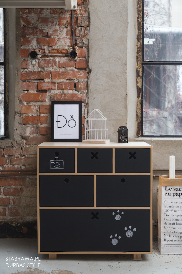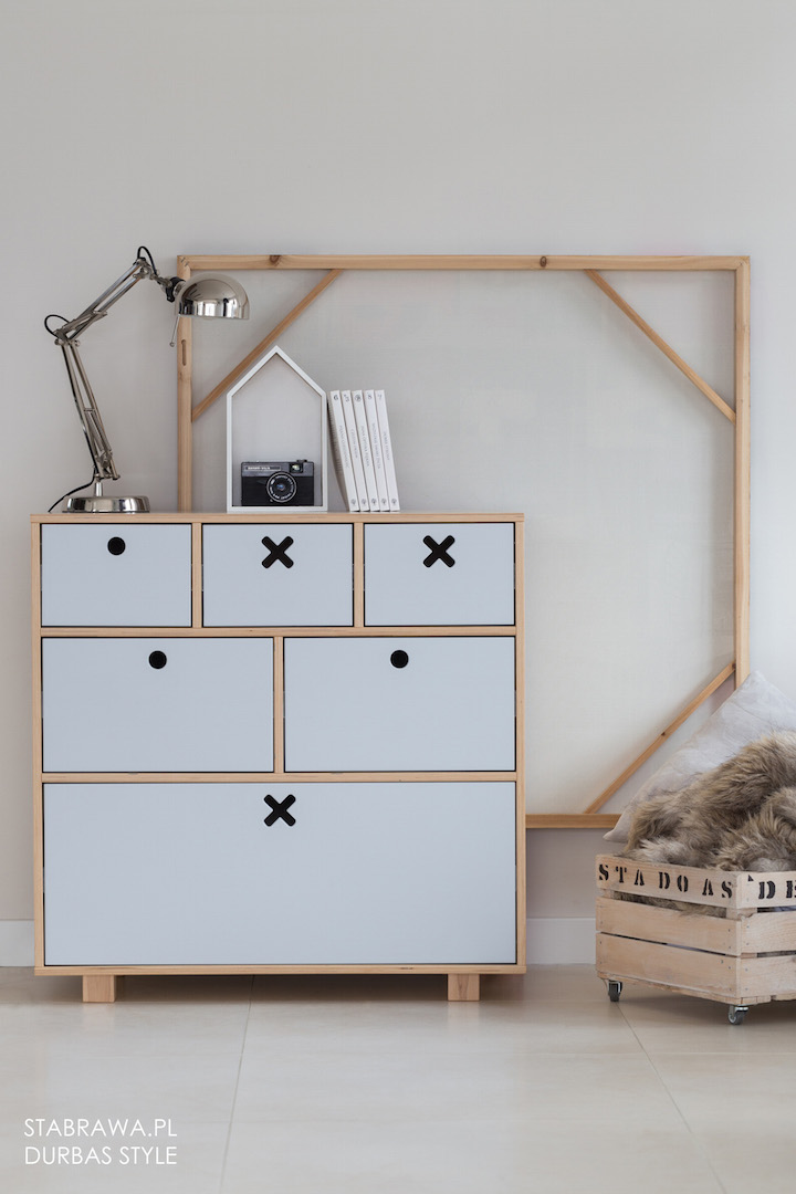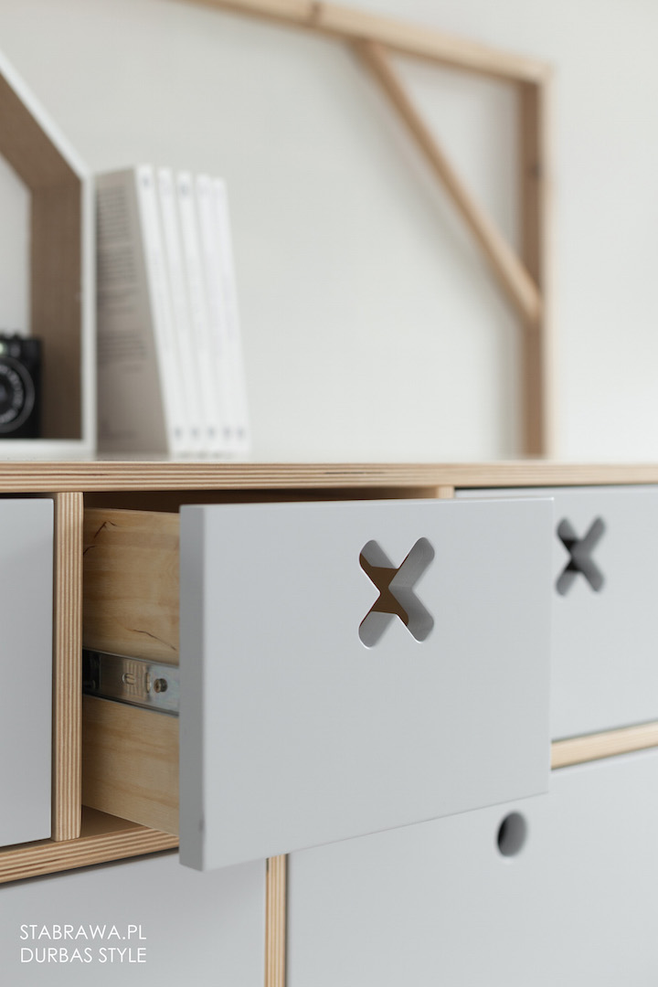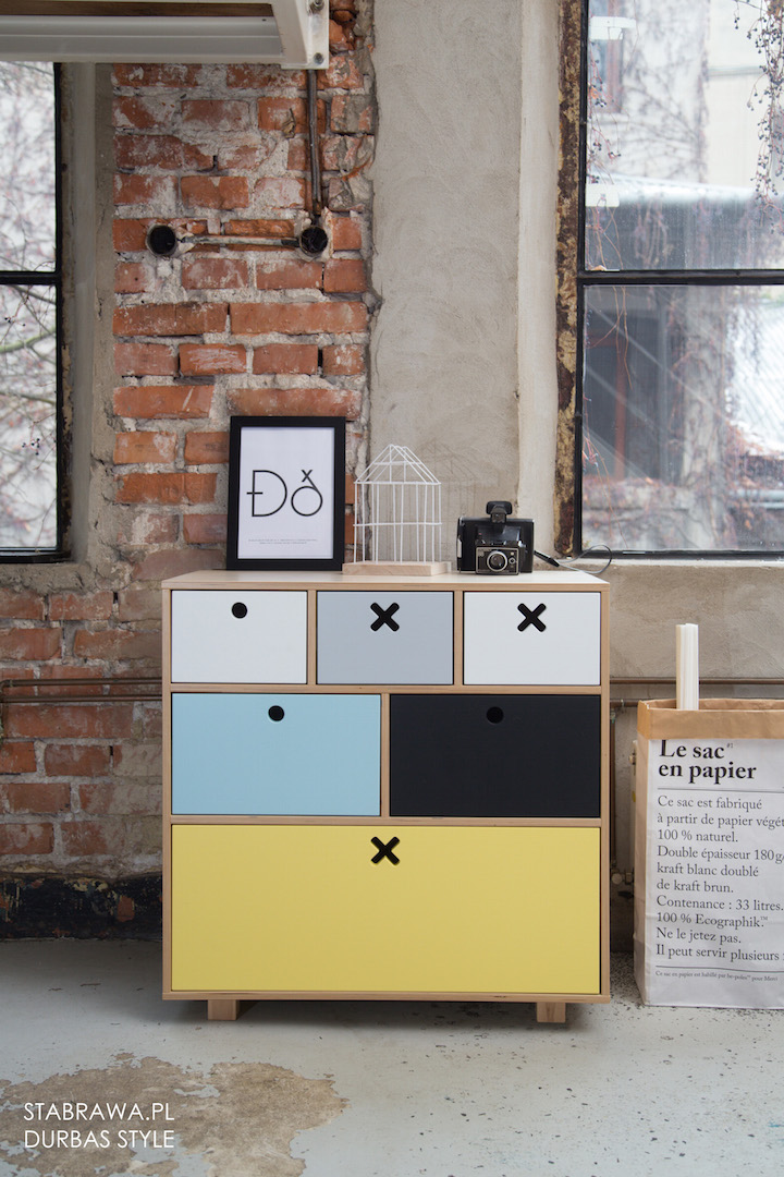 Obecnie w kolekcji mebli jest komoda niska i wysoka, biurko, kontenerek oraz półki. Niebawem pojawią się duże meble: szafa, regał i łóżko – wypatrujcie!